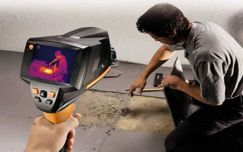 Özellikle yerden ısıtma sistemleri ve sıcak su borularındaki kaçaklar için kullanılır. Termal kameralar, sıcak suyun sızdığı alanda yüzeyde oluşan sıcaklık farklarını göstererek kaçağın izini sürer ve gizli sızıntıların yerini ortaya çıkarır.